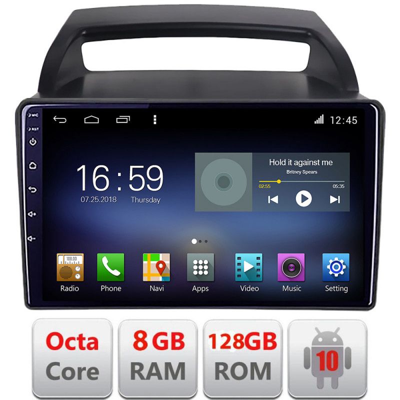 Android 10 ∙ procesor Octa Core Intel Spectrum UIS7862 1.87Ghz∙ memorie 8GB RAM+128GB ROM ∙ slot card SIM 4G ∙WiFi ∙ GPS ∙ intrare de cameră spate ∙ Radio cu RDS ∙ DSP ∙ intrare USB camera DVR ∙ funcție CarPlay