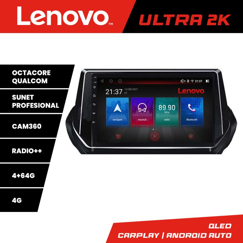 Navigatie Peugeot 2008 2020- Android radio gps internet 8 core QLED Qualcomm 4+64 360 Lenovo