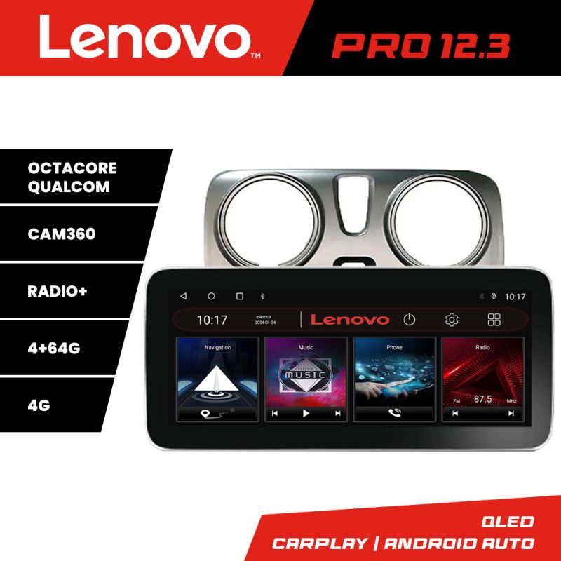 Navigatie Dacia Dokker Lenovo PRO 4+64 12.3 inch qled android 4G DSP gps internet 8Core